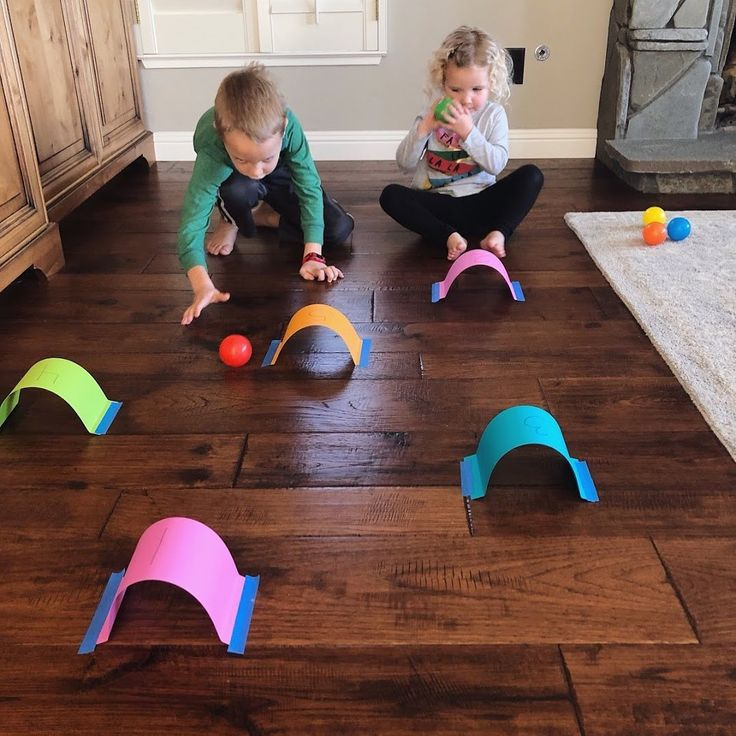 - «Боулинг»: купите игрушечный набор для боулинга или постройте башенки из конструктора или кубиков и сбивайте их маленькими мячиками.