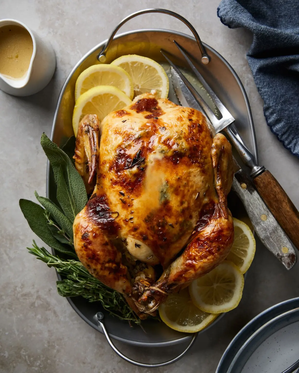 Это очень простой и вкусный способ запечь вкуснейшую курочку в любой день и особенно к праздничному столу. Гости будут в восторге и обязательно попросят не только добавки, но и рецепт. курица с толстыми ножками (вес около 2 кг) 1 лимон 1 ч. л. соли 1 ч. л. молотых перец 1 ст. л. оливкового масла зелень свежая пакет для запекания Снять цедру и выжать сок с одного лимона. Добавить по 1 ч. л. соли и молотых перцев. Немного рубленной свежей зелени и 1 ст. л. оливкового масла. Натереть курочку полученной смесью, поместить в пакет для запекания. Завязать, переложить в противень. Сделать проколы сверху. Поставить курицу в горячую духовку на 1,5-2 часа при 170 градусах. Чтобы корочка вышла румянее, пакет нужно разрезать и убрать в стороны за 10 минут до готовности.