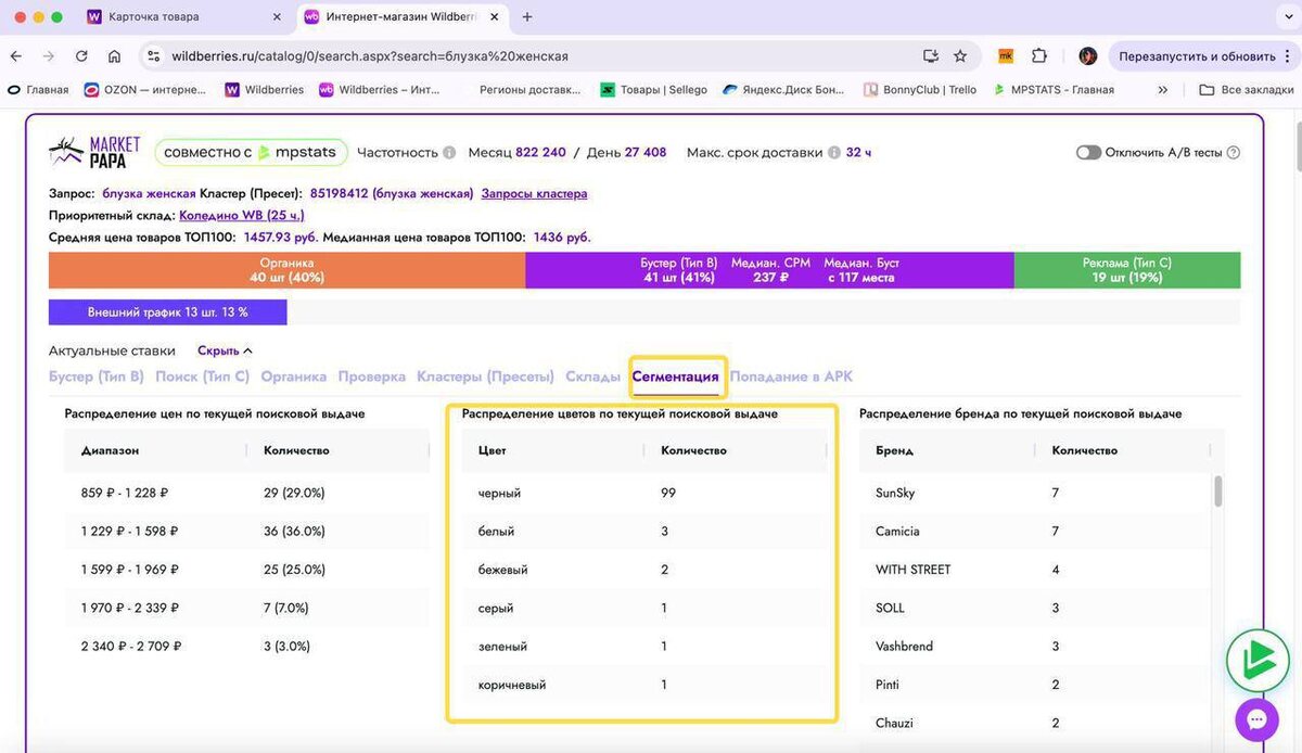 Плагины «Маркет Папа» — это мощный инструмент, который анализирует цветовую гамму вашей карточки товара и сравнивает её с конкурентами.