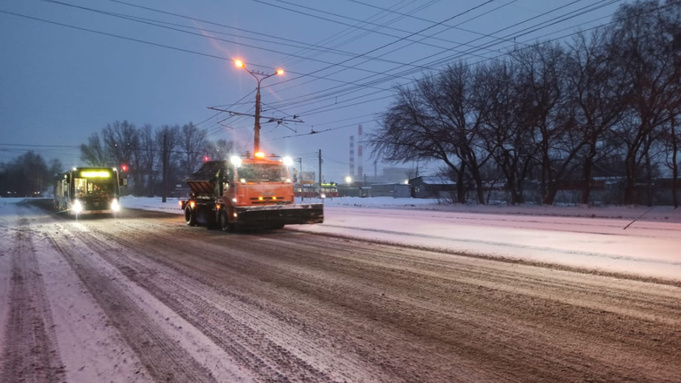 И днем и ночью. Дорожники очищают улицы Барнаула после снегопада