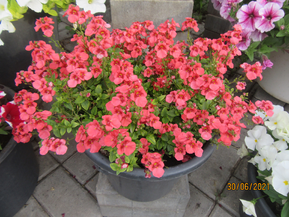 Пару лет выращивал вегетативную диасцию . Проблем с ней нет вообще никаких . Она легко черенкуется , отлично сохраняется в зимний пириод , болезней и вредителей замечено не было ( кроме небольшого хлороза ) , после первой волны цветения , которая заканчивается в конце июня , растение обрезаем , после обрезки диасция быстро обрастает и цветет до глубокой осени . Не знаю почему она редко встречается в цветниках , ведь диасция реальный конкурент любелии , да и сортов диасции думаю не меньше чем у лобелии . Грунт для диасции , такой же как и для всех растений - земля с огорода + перегной ( 1 : 1 ) , до высадки на ПМЖ расаду диасции ничем не подкармливаю , после высадки два раза подкармливаю мочевиной , потом 2 - 3 раза за лето Фертика люкс . На фото ниже 2021 . Диасцию вместе со всей другой вегетативкой черенкуем . Грунт для черенкования Терра - вита . . .. .. Укорененные черенки - 3 растения в 100 мл . Не знаю как лучше или по одному черенковать или по 2-3 . .. После переезда рассады