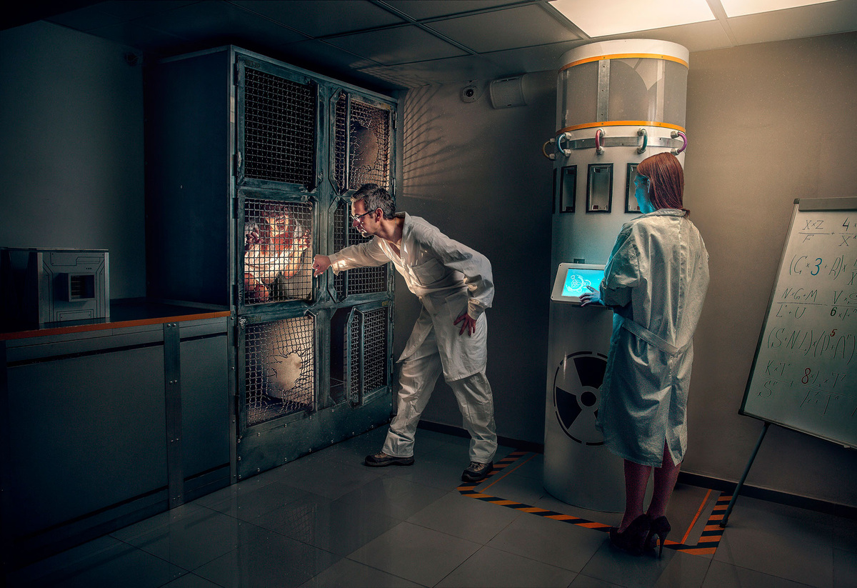 К приёму комиссии готовы. В коридорах выполнен максимально мрачный пейзаж, слабое освещение, оборудованы жутко скрипящие половицы. В опытных помещениях размещены генераторы инфразвука — настроены на общее угнетение психики. Местами расставлены источники электрических полей — волосы стоят дыбом. Изготовлен муляж муравья-мутанта, помещен в банку. Трехлитровую. Со спиртом. Какие жертвы! За окном главного зала — по оси излучения экспериментальной установки — деревья опалены, листья оборваны, трава выжжена, разложены останки мелких животных.
