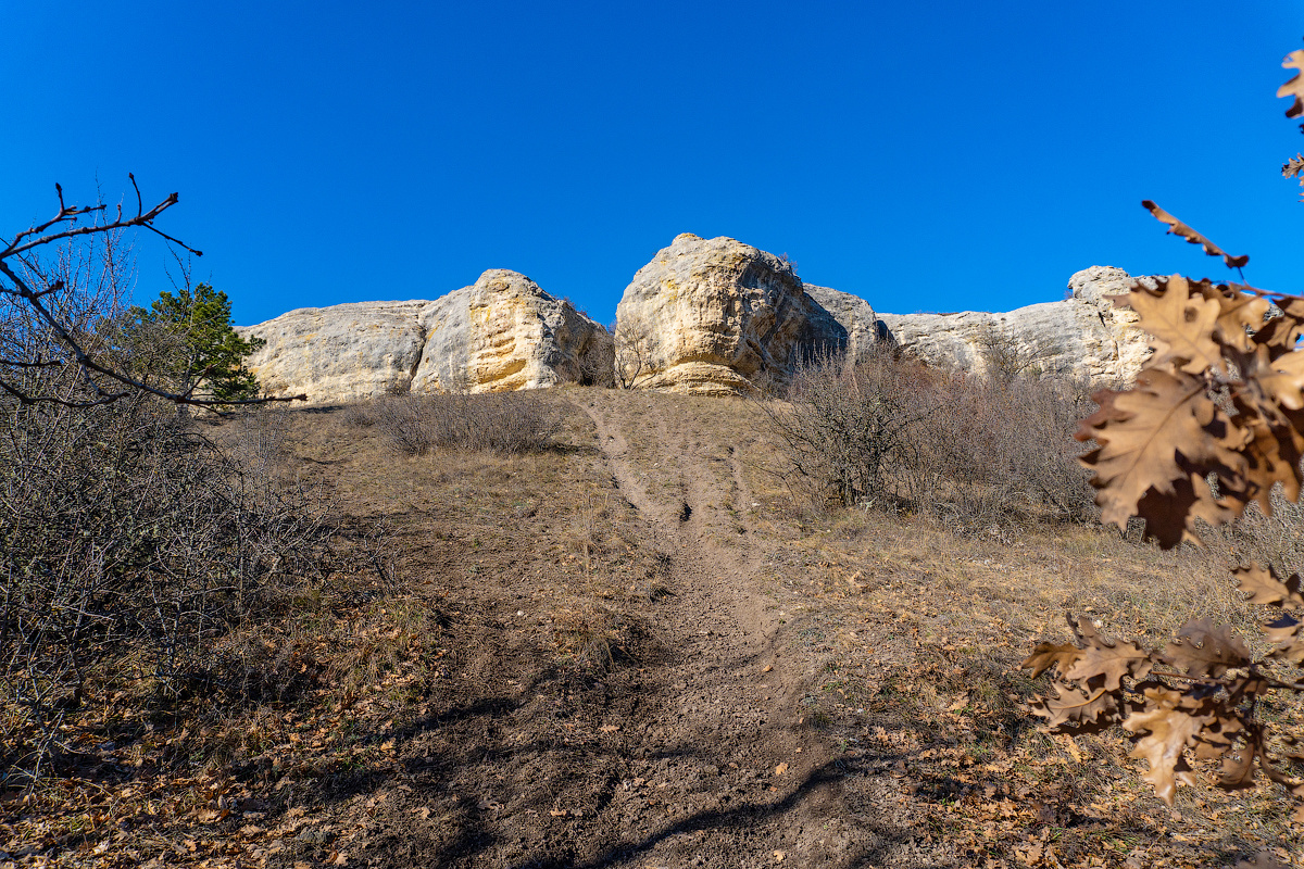 Далее наш путь лежал под скалой. И сначала мы думали, что просто дойдем до тропы, ведущей вниз и спустимся к машине. Но оказалось, что с этой стороны тоже есть небольшие гроты.