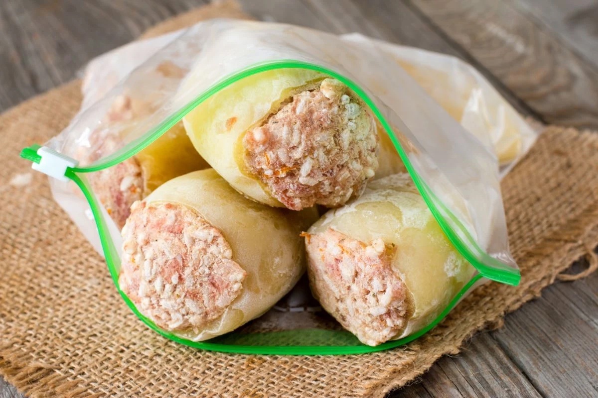 Раньше я замораживала перцы совсем по-другому. Срезала донышко, фаршировала начинкой - фаршем с рисом и замораживала в таком виде. Готовить их, конечно, потом очень удобно - просто затушил и все. Однако фаршированные перцы занимают очень большой объем в морозилке. К тому же в горячий во всех смыслах летний сезон надо делать фарш, готовить рис и тратить время на фаршировку перцев. В этом году сделала все иначе. Просто разрезала перцы пополам, убирала сердцевину и замораживала - на специальной доске в морозильнике. Потом, после заморозки, складывала друг в дружку и убирала в пакеты. Так делать намного быстрей, и места они занимают совсем немного. И зимой уже есть время спокойно сделать начинку и нафаршировать перцы. Правда, пришлось поменять технологию приготовления. Раньше я их складывала в латку, заливала водой, добавляла сметану, перец, соль и тушила. А вот половинки так не сваришь. Теперь я раскладываю их в формы для запекания, добавляю начинку и все. Прямо так запекаю. Хотя мо