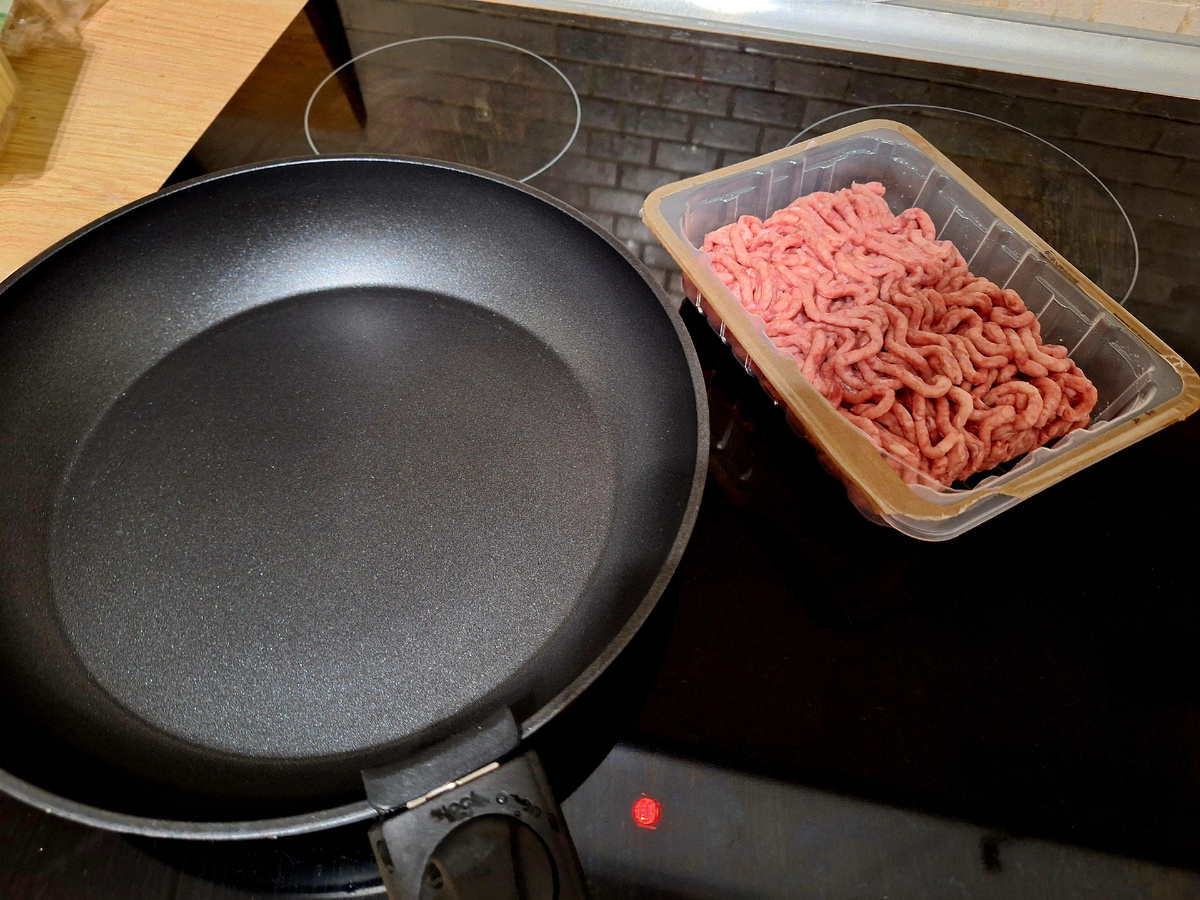 Качество фарша сильно влияет на вкус салата, поэтому лучше не экономить. Я обжариваю его на сухой раскалённой сковороде – в непостном фарше достаточно своего жира.