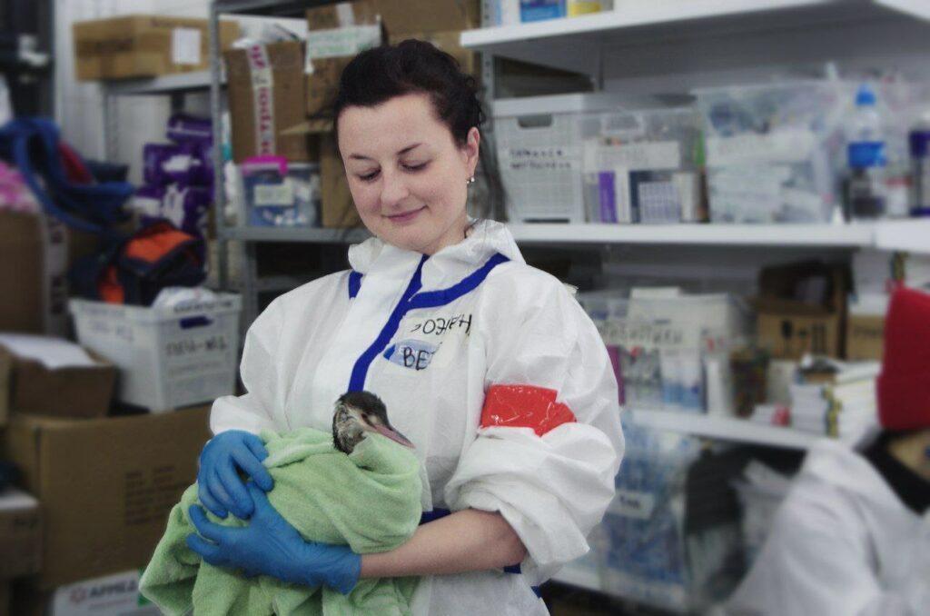 На береговой линии продолжают поиск и отлов загрязненных мазутом птиц. Их доставляют в спецпункты, очищают, лечат и готовят к отправке на реабилитацию.