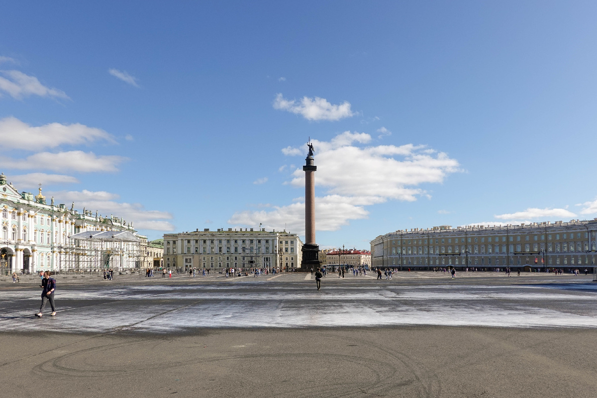 Театр начинается с вешалки, а Петербург - с главной Дворцовой площади. Так почему большая ее часть покрыта неэстетичным скучным асфальтом? Прямо Липецк какой-то. Здесь нужно уложить плитку, разбить клумбы, установить фонтаны, устроить торговые павильоны с сувенирами для приезжих. Возможно, каток.