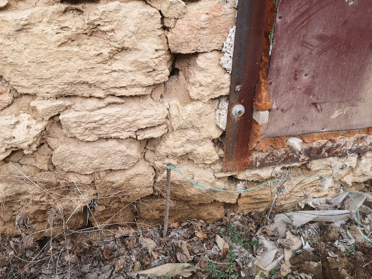 На фото виден кусок замурованной временно второй двери. От нижнего края до земли сантиметров 30 и видно, что камни внизу мокрые.