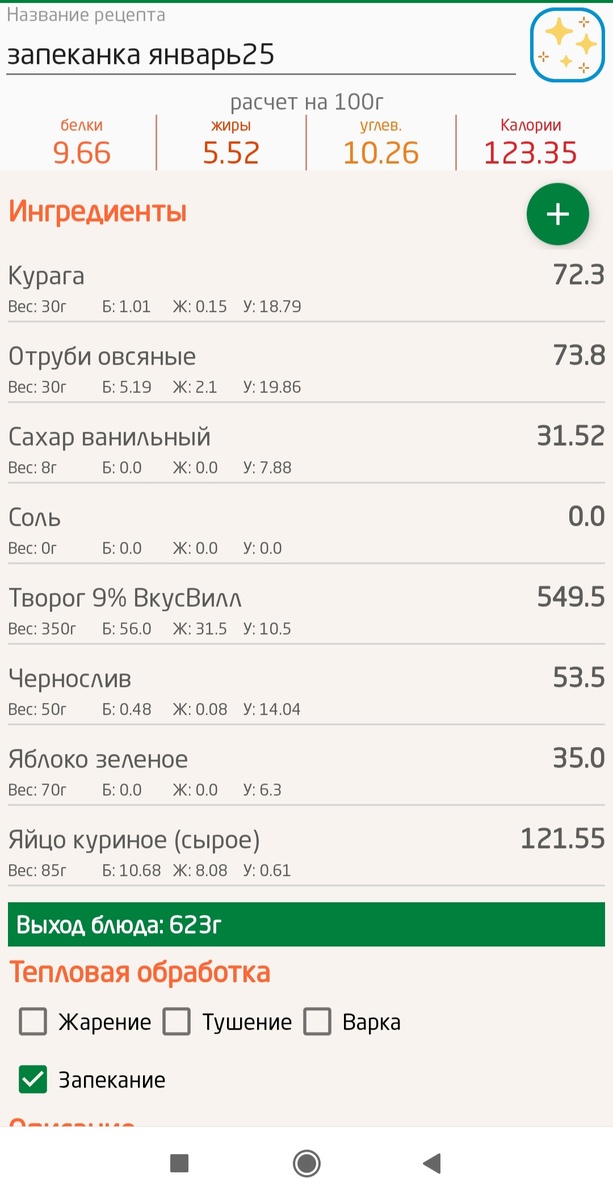 Продолжаю заготовку вкусных завтраков (или полдников) впрок. Начало тут Мне одна Знакомая рассказала, что диетолог ей разрешила не считать калории отрубей, когда она их использует в приготовлении еды. Я, на всякий случай, в табличку внесла, пусть будет. Быстренько залили сухофрукты кипяточком, смешали в миске творог, яйца и отруби, оставили всё настаиваться. Соль-сахар по вкусу, очень важный эксперт проверил и одобрил их количество. Оставили смесь настаиваться, а сами ушли гулять. По возвращению (примерно через часик) чистим яблоки, режем. В силиконовую форму послойно выложила яблоки, творог, сухофрукты, яблоки. Запекаем минут 35-45 Всё готово. Получилась сочная пушистая запеканка. Можно угощаться. Я разделила на 5 частей и убрала в морозилку. Итого, у меня получилось 5 порций запеканки, 3 порции сырников. На месяц вполне - не каждый же день их есть, можно на завтрак и яишенку сочинить. Осталась ещё одна пачка творога, наверное, это будут ленивые вареники.