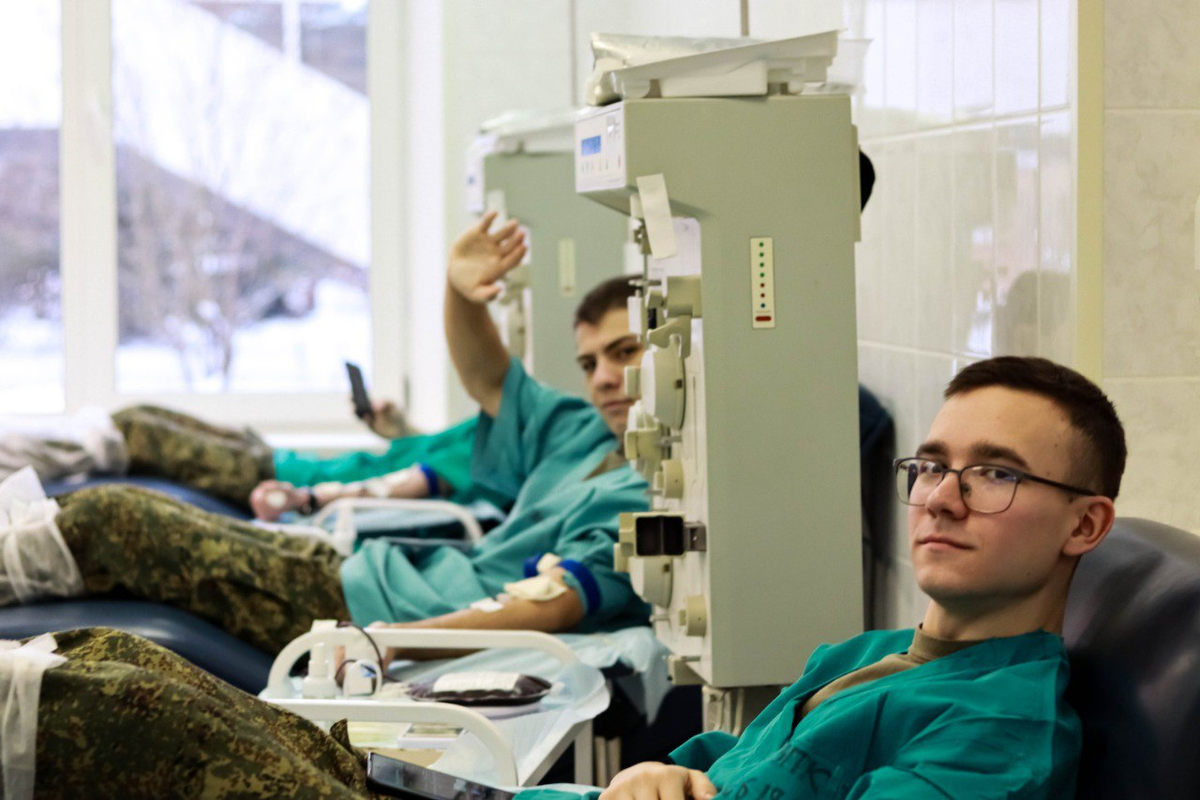 Желающих оказать помощь участникам специальной военной операции и сдать свою кровь было намного больше, чем выделенная квота отделения заготовки и переливания крови филиала № 3 военного госпиталя им. А.А. Вишневского, поэтому ежедневно забор крови проводился в составе не более одного взвода.