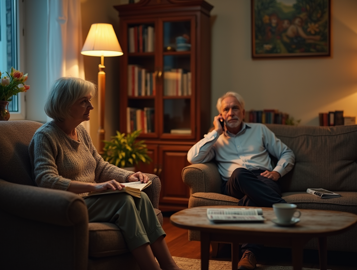 Вечерняя прохлада уже начинала пробираться сквозь неплотно прикрытую форточку, принося с собой запах опавших листьев и мокрого асфальта. Ольга, устроившись в своем любимом кресле с книгой, краем глаза наблюдала за мужем. Сергей, как обычно после работы, расположился на диване с телефоном. Все было привычно и обыденно, пока...