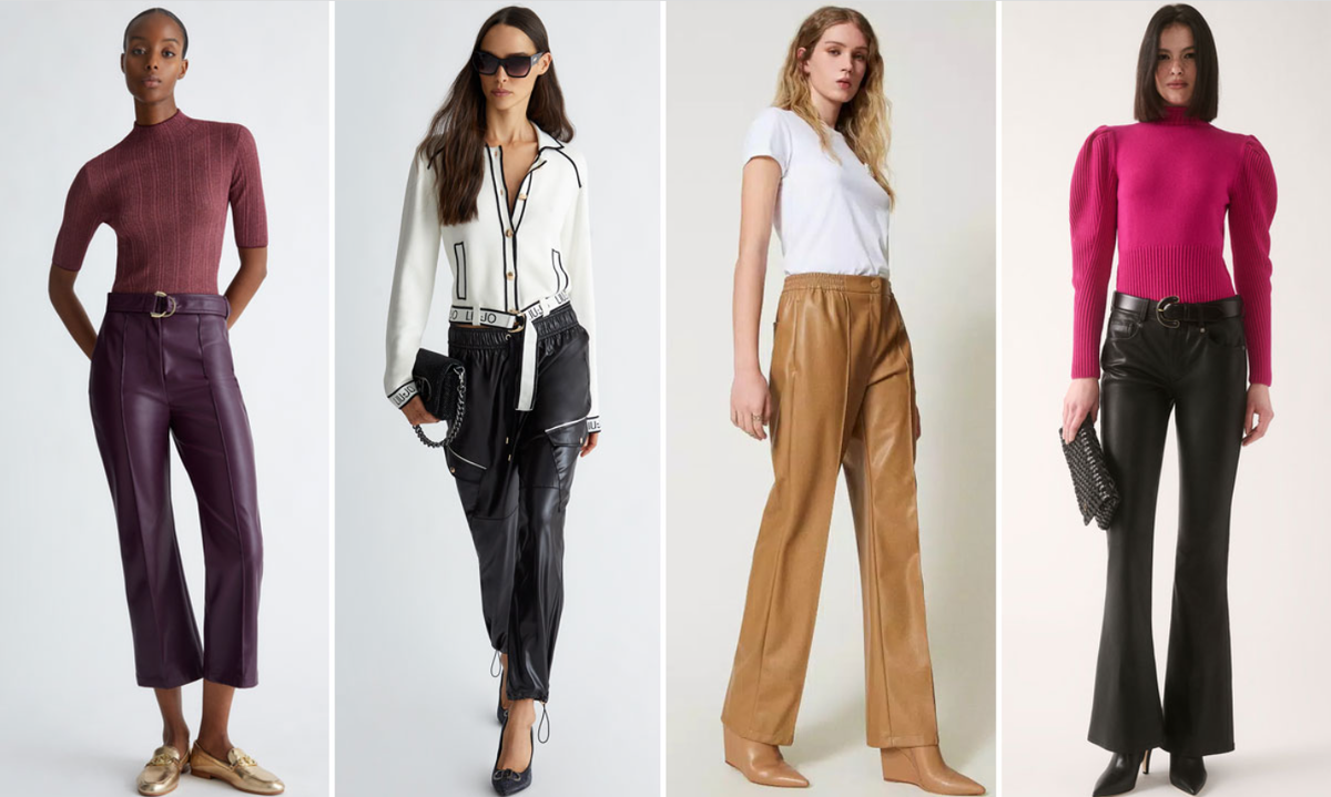 Зимой 2025 года возвращается тренд на кожаные брюки из экокожи или брюки из натуральной кожи, смелые, дерзкие и с сильным оттенком рока. Расклешенные, карго или джоггеры, прямые или укороченные: самые красивые варианты для холодного сезона. 1. Кожаные брюки со шнуровкой Зимой 2025 года распространяется тренд на брюки с эффектом кожи, тренд, созданный для тех, кто хочет всего за несколько движений добавить в образ характера. Их можно увидеть в рок-версиях с молниями по бокам и шнуровкой как в корсете вокруг передней молнии, и все это очень модной расклешенной формы. 2. Спортивные брюки из кожи Отлично смотрятся брюки из искусственной кожи выполненные из блестящей ткани с покрытием под кожу, они имеют большие боковые карманы и мягкую форму с нотками спортивного шика, как у брюк-джоггеров. Динамичная одежда, с помощью которой можно создавать стильные и сильные образы со спортивным характером. 3. Брюки-карго с эффектом кожи Если из экокожи пошить брюки фасона карго, результат получится о