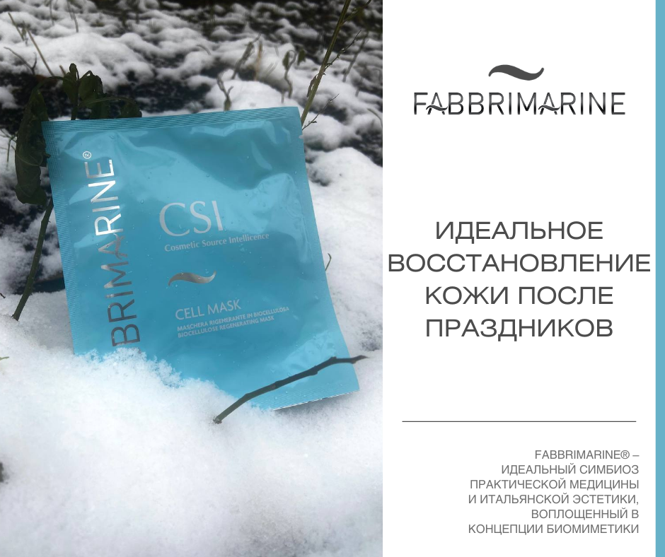 После новогоднего марафона Ваша кожа заслуживает особого внимания и восстановления. Биоцеллюлозная маска CSI от Fabbrimarine – это Ваш идеальный союзник в возвращении свежести и сияния. Почему именно CSI? Эта инновационная маска создана для глубокого восстановления и увлажнения кожи. Маска помогает восполнить потерю влаги, устранить сухость и чувство стянутости. Активные ингредиенты способствуют разглаживанию мелких морщин и повышению упругости кожи. Продукт активно способствует восстановлению кожи после стресса, усталости и внешних воздействий. Результат: После первого же применения кожа станет более увлажненной, гладкой и сияющей. А при регулярном использовании Вы заметите, как она возвращает себе здоровый и ухоженный вид. Совет от Fabbrimarine: используйте маску CSI вечером, чтобы кожа могла восстановиться в период ночной регенерации. Подарите себе время для заботы, и Ваша кожа скажет Вам спасибо!
