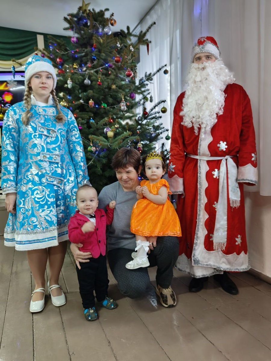 Сева немножко привык, деда Мороза потрогал, смотрел на него с восторгом. Амелька с моих рук деда за бороду хватала и мне руки показывала. Наверно рассказывала, какая борода на ощупь.
