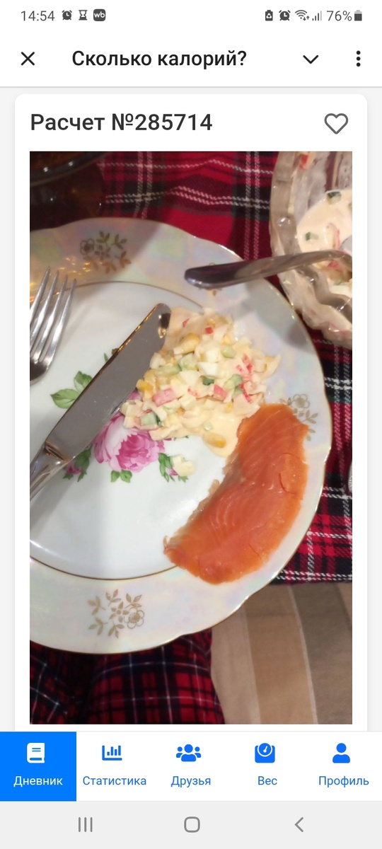Чтобы не пугать всех взвешиванием еды, скачала и оплатила на месяц бот Сколько калорий и отправляла в телеграм ему фотографии
