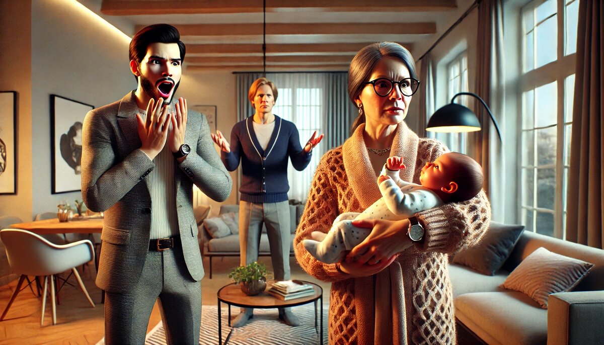 Разразившись слезами, Анна ушла с ребёнком в спальню, оглушительно хлопнув дверью. Гости обескуражены. В комнате повисает тяжёлая тишина: улыбки сменились недоумением, а в глазах — тревога.