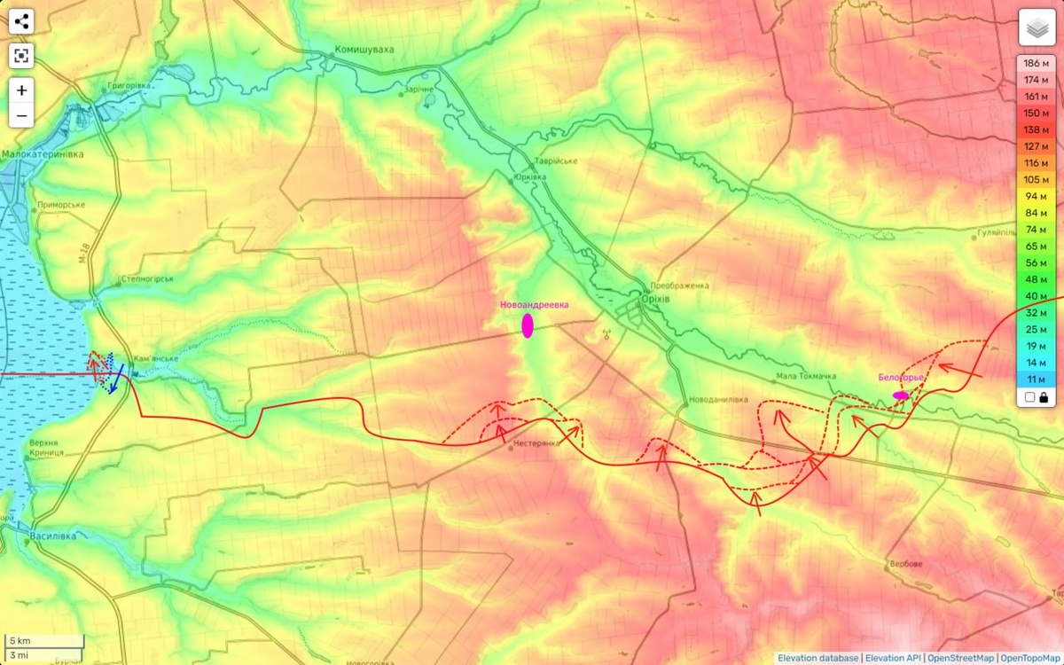 Российские военные по-прежнему выполняют боевые задачи в рамках проводимой спецоперации. За прошедшие сутки ВС РФ продолжили вести наступательные действия на рубеже Работино-Вербовое. Артиллерия 1430 гвардейского полка 58-й гвардейской общевойсковой армии нанесла поражение силам ВСУ севернее Работино. На Ореховском направлении к востоку от Орехова фиксируется активизация фронта в районе Малой Токмачки. Ведется активная контрбатарейная борьба с обеих сторон. Российская авиация авиабомбами наносит удары по пунктам временной дислокации, живой силе и технике ВСУ. За день боёв ВСУ потеряли более 90 солдат, три автомобиля, три станции радиоэлектронной борьбы и склад боеприпасов. Всего за прошедшую неделю, по данным Минобороны РФ, ВСУ потеряли более 500 военнослужащих, 30 автомобилей, шесть орудий полевой артиллерии, пять станций радиоэлектронной борьбы и пять складов боеприпасов. «Подразделения группировки войск «Днепр» нанесли поражение живой силе и технике механизированной, пехотной бригад