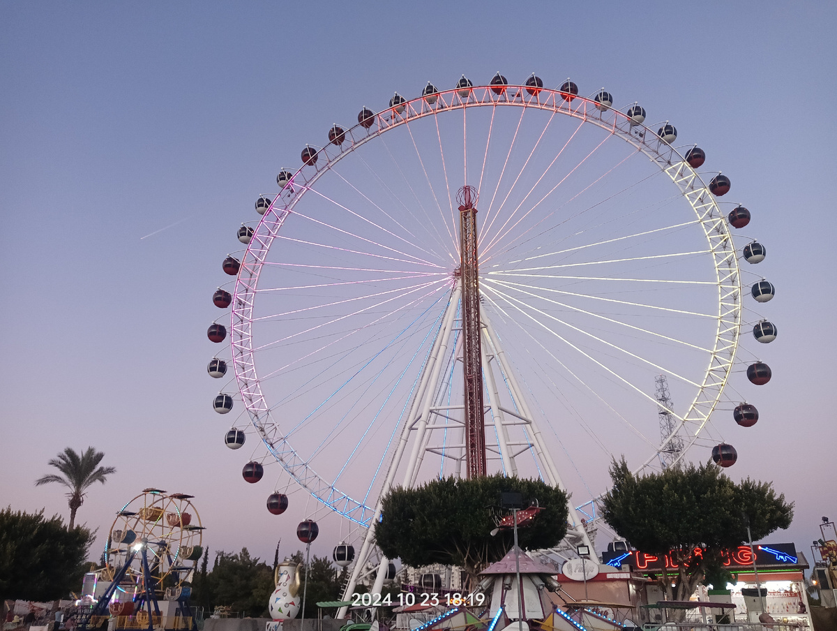 Также в списке к посещению у нас был парк аттракционов Aktur park, в котором находится колесо обозрения сердце Анталии. Мы это колесо видели аж из Бельдиби, оно вечером светилось разным цветом) И в последний полноценный день в Анталии мы поехали в сторону парка. Напротив лунапарка Aktur park находится парк культуры имени Ататюрка, мы решили и туда зайти посмотреть что там интересного. Главное, что нас впечатлило по пути туда - это когда мы вышли из автобуса и на надземном пешеходном переходе увидели эскалатор. У нас я такого не встречала... Вроде бы в парке есть панорамный лифт, но мы до него не дошли. К стеклянной пирамиде близко не подходили, нам не особо было интересно. А вот к прудам, которые там есть подошли. Природу мы любим) Там очень интересно расположены 3 пруда разного размера, соединенных между собой. Они не глубокие и в них плавают карпы и утки, а по берегам водятся котики (как и везде в Турции)) Небольшое видео из парка (с телефона надо развернуть) Оттуда мы перешли че