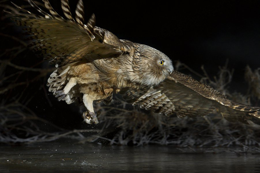 Окей, Гугляндекс! Ходил на рыбалку и ничего не смог поймать! Кто украл всю рыбу из озера? Это был гигантский рыбный филин! Удивлены? Готовы узнать о птице, которая даст фору любому рыбаку со спиннингом? Тогда погнали! Тихая речка, туман над водой, рассвет… Красота! Я, вооружившись удочкой и бутербродами, мечтаю о трофейном леще. И вдруг… шорох, тень, и над самой водой пролетает что-то огромное, с размахом крыльев чуть ли не с мою лодку! Я чуть удочку не выронил. Оказалось, это был… нет, не птеродактиль (хотя в тот момент я был готов поверить и в это), а рыбный филин. К сожалению, близко рассмотреть не удалось, но впечатление осталось на всю жизнь. Рыбный филин, или, как его еще называют, дальневосточный рыбный филин (научное название Ketupa blakistoni – звучит как заклинание, правда?), – это настоящая птица-гигант и одна из самых крупных сов в мире. Представьте себе сову, которая размером почти с орла, а размах крыльев у нее – под два метра! Длина тела достигает около 70 см, а их масс