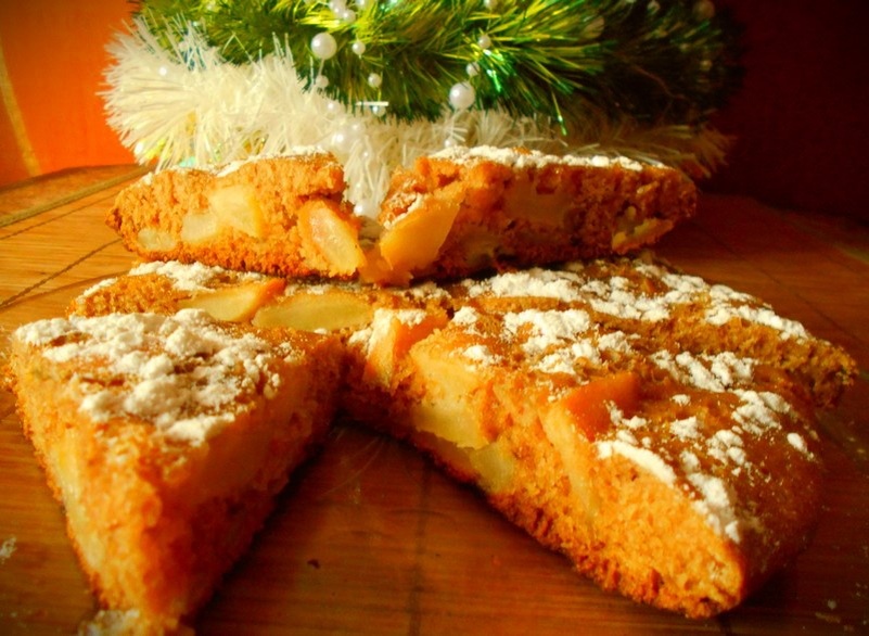 - Готовый яблочный пирог посыпать сахарной пудрой, после того, как он остынет.