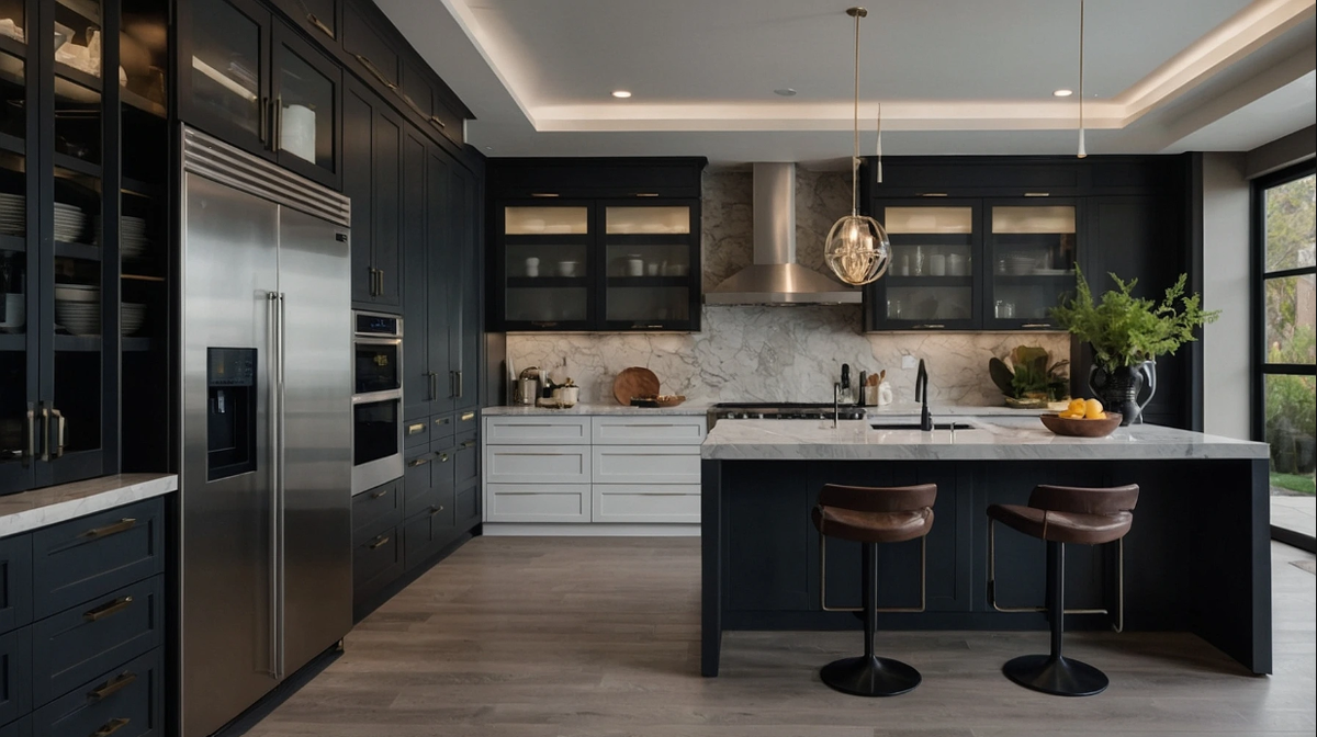 Минимализм продолжает завоевывать сердца дизайнеров, и кухни без ручек в этом году — один из ключевых трендов. Мебельные фасады с интегрированными механизмами открывания выглядят стильно и лаконично, а также облегчают уход за кухней. Это решение добавляет интерьеру строгости и чистоты, оставляя только самые необходимые элементы на виду.