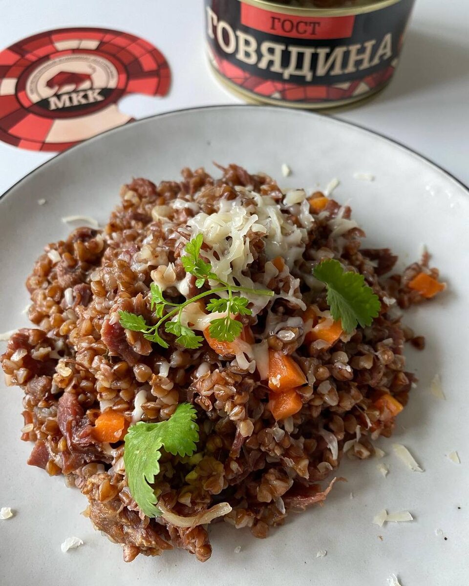 4. Поместить гречку с морковью в кастрюлю налить немного бульона, варить, пока бульон почти полностью не впитается.