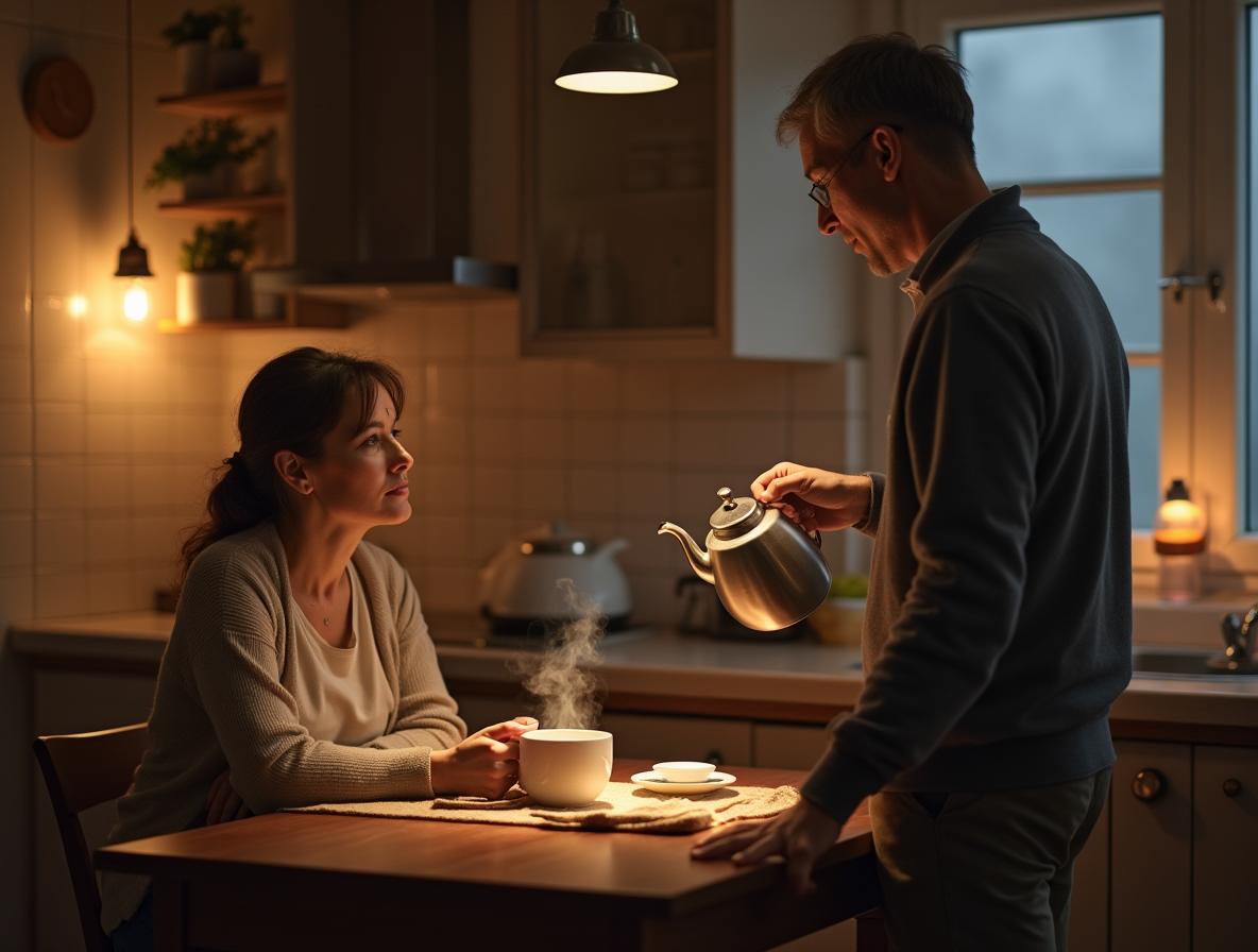 – Знаешь, – начал Андрей, заваривая чай, – я сегодня весь день думал... – он запнулся, подбирая слова. – Думал о том, что ты сказала утром. И... ты права. Я действительно стал каким-то... отстраненным, что ли.