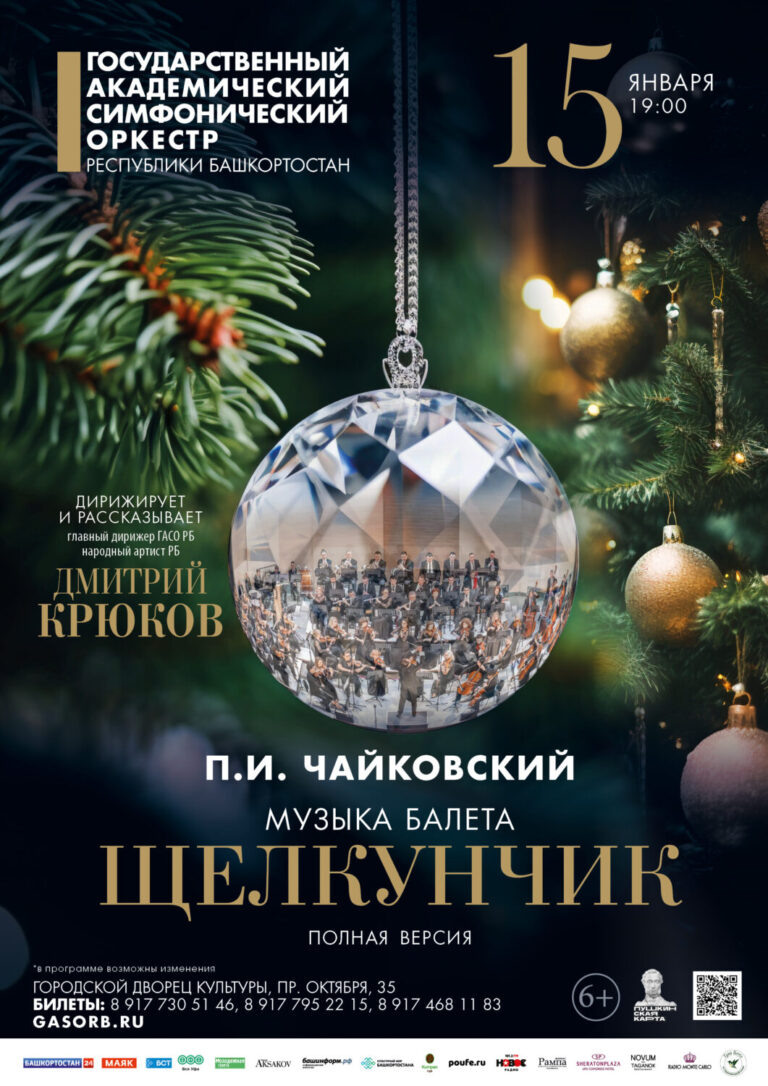 15 января на сцене Городского дворца культуры Госоркестр Башкортостана представит полную версию музыки самого волшебного и зимнего балета «Щелкунчик» П. И. Чайковского. Уже более 125 лет балет «Щелкунчик» живет на театральной сцене и является главным новогодним представлением! Однако чудесная и завораживающая музыка из балета в полной версии и в концертном исполнении звучит не часто, только отдельные номера. Госоркестр РБ стремится исправить эту несправедливость, ведь музыка Чайковского настолько гениальна, что и без театрального действия на сцене рисует в воображении зрителей самые яркие образы балета! Тем более, что в концертном исполнении есть возмножность сыграть всю партитуру балета большим составом оркестра, чтобы прочувствовать весь масштаб, эпичность, лирику и красоту знаменитых мелодий волшебной зимней истории. В музыке балета радости безмятежного мира детства удивительным образом сочетаются с глубокими философскими раздумьями композитора о жизни и смерти, о красоте подвигов в