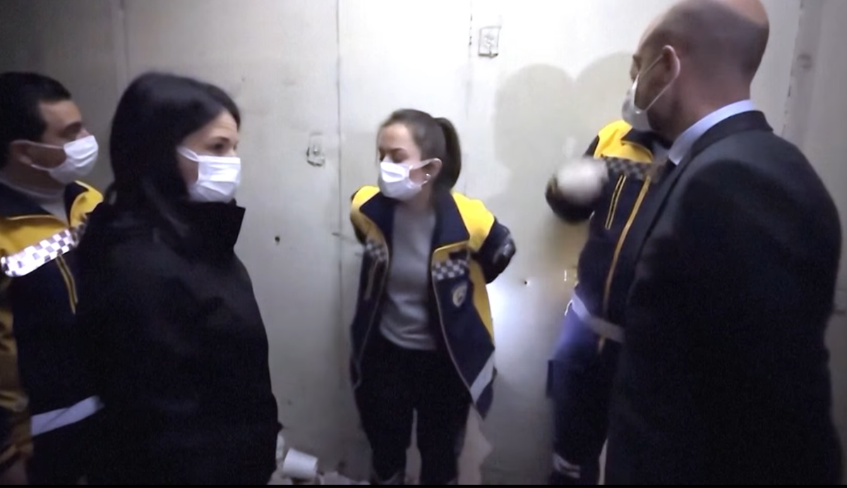 Этот чудесный человек рассказывает о "криминальном режиме", который они снесли. Слева стоит мужчина - почему-то с младенцем на руках. А где же мама? И женщины? Бербок же требовала перед отъездом.