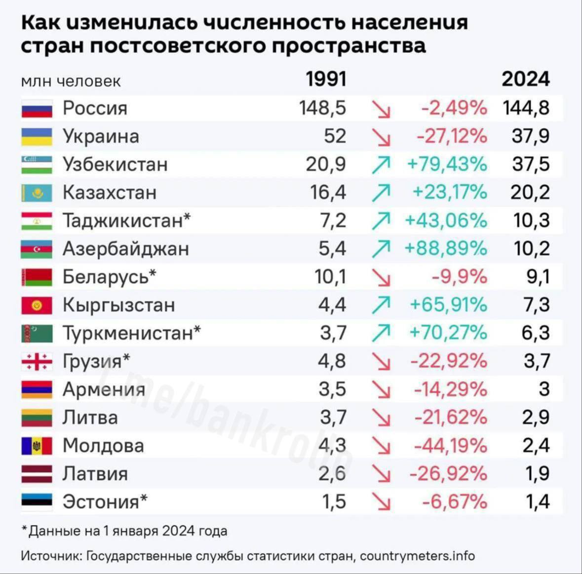 Что если бы СССР не распался? Можно предположить что в этой альтернативной реальности динамика изменения численности населения по союзным республикам не сильно бы отличалась от реальности Сторонники СССР согласны жить в ТАКОМ Советском Союзе?