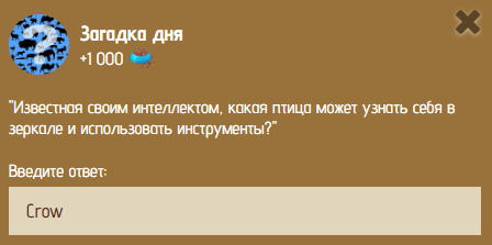 Сегодня вышла новая загадка дня в зоопарке 03.01.25 Ответ будет действителен до завтра, 18:59 по мск 4 января. Известная своим интеллектом, какая птица может узнать себя в зеркале и использовать инструменты?