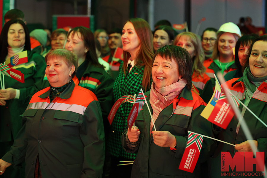 «Марафон единства», который в эти дни гостеприимно принимает столица шахтеров, не сбавляет обороты. В ОАО «Солигорский домостроительный комбинат» 3 января прошла встреча «Разам працуем, разам спяваем», передает корреспондент агентства «Минск-Новости». Республиканская общественно-культурная акция подарила праздник работникам одного из крупнейших строительных предприятий в Минской области. — Символично, что «Марафон единства» проходит в Солигорске в дни новогодних праздников, — обратил внимание генеральный директор домостроительного комбината Роман Грязных. — Он наполняет радостью не только улицы города, но и учреждения, дома культуры, цехи предприятий. Председатель Солигорского районного исполнительного комитета Анатолий Лодыга подчеркнул, что домостроительный комбинат выполнил все основные показатели в 2024 году. — Благодаря вам возводится жилье, построена школа, которая станет эталоном для других городов Беларуси, — обратился к заводчанам А. Лодыга. — Спасибо за ваш нелегкий труд. Он