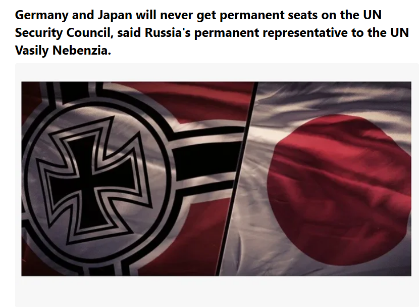 Германия и Япония никогда не получат постоянных мест в Совете Безопасности ООН. Окончательно и без вариативно это определил наш представитель в ООН Василий Небензя. «Есть страны, которые претендуют на место в Совете Безопасности, которое они никогда не получат, мы об этом уже сказали прямо. В частности, Германия и Япония. Не видать места постоянного члена Совета Безопасности не только как своих ушей, но и всего остального. Это уже очевидный факт», сказал Небензя. Справка: Германия и Япония не могут получить постоянное место в Совете Безопасности ООН из-за сложного сочетания исторических, политических и геополитических факторов. Их статус как бывших стран-агрессоров во Второй мировой войне создает исторические и символические барьеры, особенно со стороны Китая и Южной Кореи, которые выступают против включения Японии, и некоторых европейских стран, включая Россию, которые не хотят усиления Германии. Также расширение Совета Безопасности требует согласия большинства стран-членов ООН, в том