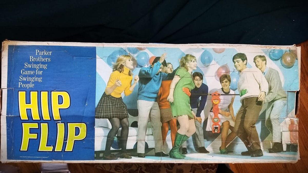 "Игра для вечеринок для свингующих пар! Hi-fi или радио музыка задает ритм, а ваши гости проводят «лучшее время в жизни», пытаясь раскачать пластину Hip Flip вокруг деревянного стержня. Побеждает та пара, которая первой совершит пять вращений в любых трех из четырех положений тела, указанных на волчке. Hip Flip состоит из 30-дюймовой пластины с настоящим колокольчиком на конце, набора рук для дам, набора рук для джентльменов и гигантского волчка. Hip Flip — это захватывающая игра, в которую может играть любое количество любителей свинга и за которой очень весело наблюдать.