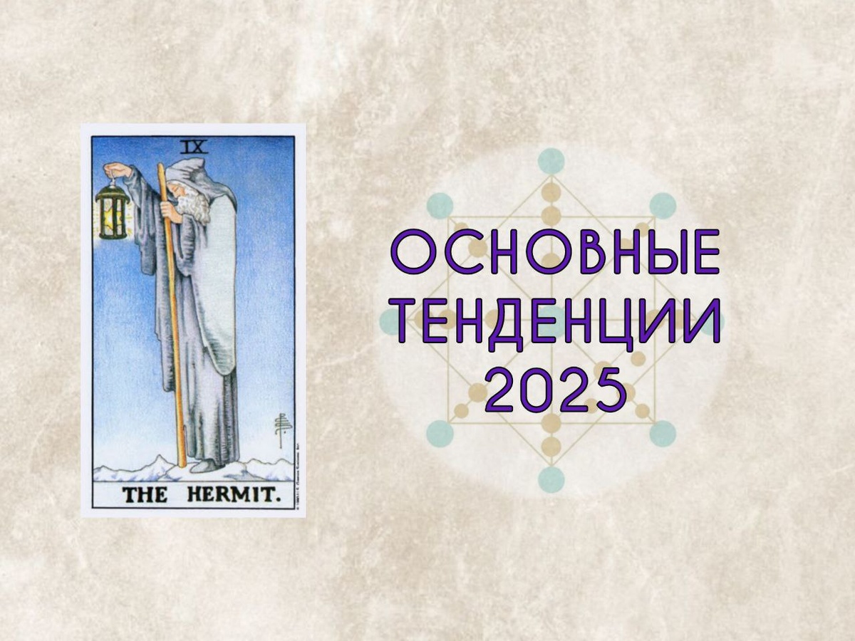 2025 год пройдет под покровительством 9 энергии. В Таро это аркан Отшельник Этот аркан затрагивает темы уединения, мудрости, осознаний и стремлений к искренности. Поэтому 2025 будет годом, когда многие захотят переосмыслить свои цели, ценности и отношение к миру. Внешние достижения потеряют прежнее значение, уступая место личной глубине и внутреннему благополучию. Многие почувствуют необходимость замедлиться, чтобы сосредоточиться на том, что действительно важно и ценно. Многие будут искать ответ на вопрос: Кто я на самом деле? Или Какова моя истинная цель? Под влиянием Отшельника люди станут меньше фокусироваться на материальных ценностях и больше на вопросах духовного характера. Для кого этот год станет «годом паузы». Возможно, вы решите развить ранее скрытые таланты или заняться поисками более подходящего вам духовного пути. Этот год очень удачный, чтобы начинать новые обучения, посещать какие-то вебинары, обучающие программы и т.д. А, возможно, вы уже созрели сами для передачи свои