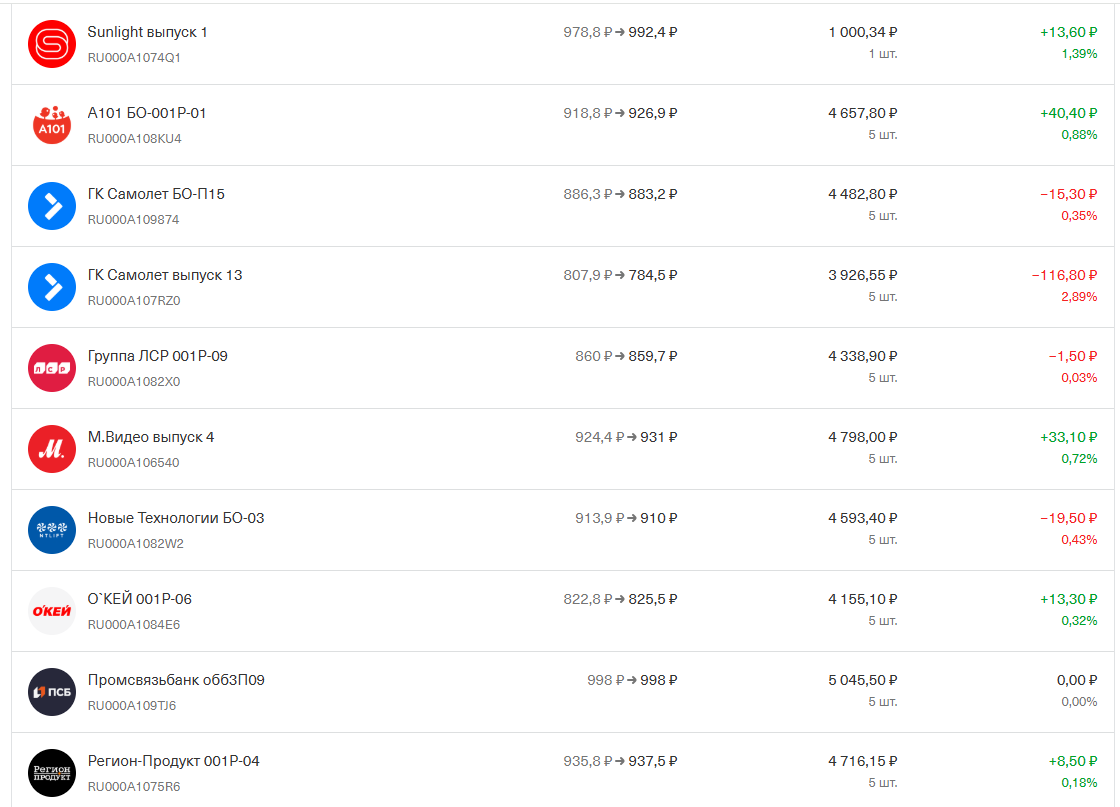 Доброго времени суток всем кого интересует создание инвестиционного портфеля с 0. На сегодняшний день мой портфель состоит из следующих облигаций: Покупал по 5 шт, для диверсификации и фиксирования цены покупки. В дальнейшем буду расширять и состав и количество. Поступающие купоны буду реинвестировать также в облигации. По выплате купонов и увеличении портфеля буду писать отдельно. За 2025 год еще не поступило ни одного купона, поэтому начинается новый отсчет. В портфеле есть одна облигация "М.Видео выпуск 4" с выплатой купона 1 раз в квартал. Купил когда-то для интереса, сейчас концентрируюсь на облигациях с выплатой купона каждый месяц. (Не является инвестиционной рекомендацией, а лишь отражает позицию автора)