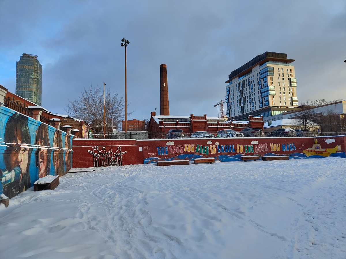 Любопытный арт-объект, посвященный всеми известной группе, располагается в Екатеринбурге на берегу Исети. Включает в себя: 🎨Скульптурная композиция, выполненная в виде чугунных силуэтов музыкантов The Beatles, стоящих на фоне кирпичной стены. Монумент является первым и единственным памятником группе в России. Его открытие состоялось в 2009 году, в церемонии принимал участие музыкальный коллектив The Quarrymen, который основал Джон Леннон. Чугунные контуры были отлиты в 2007 году, на заводе Михайловска Свердловской области. Специально для этой композиции на берегу реки Исеть создали помост и выложили стену из красного кирпича. Символично, что силуэт Джона Леннона отлили в день его рождения. 🎨 Граффити в честь ливерпульской четвёрки создано британским уличным художником Джеймсом Кокран (Джимми Си) в 2021 году. 🎨 Именные скамейки. The Beatles — британская рок-группа из Ливерпуля, основанная в 1960 году. В её состав входили Джон Леннон, Пол Маккартни, Джордж Харрисон и Ринго Стар