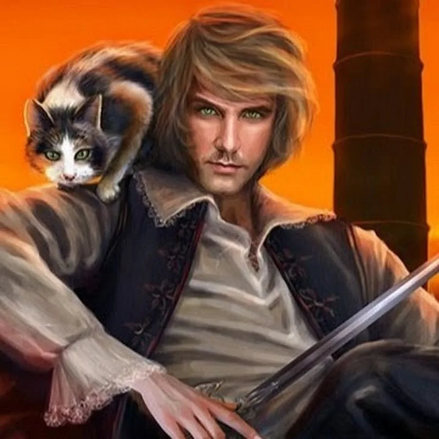 Однако девушка опомнилась и оглянулась более подробно. Дверь все так же оставалась приоткрытой, а значит... Она помахала руками, но так чтобы мужчина не услышал ее, Элеонора привлекла внимание Оладьи и указала на дверь. Тихонько соскользнув на пол, девушка схватила массивный серебряный подсвечник на подоконнике и со всей силы опустила его на голову мужчины. Этого мгновения хватило для того, чтобы кошка выскользнула из ловушки и шмыгнула в дверь. Элеонора сразу поспешила за ней, однако не успела. Мужчина, так и не потерявший сознание от удара, схватил девушку за край халата и рванул на себя. Несколько секунд смятения и в покоях воцарилась сцена как будто из комедийного фильма. Высокий крепкий мужчина направляет блестящий меч в сторону незнакомки в халате. А она, в свою очередь, вместо оружия держит серебряный подсвечник и явно готова фехтовать им. Кошка, надувшаяся как шарик, стоит между ними и изо всех сил рычит.