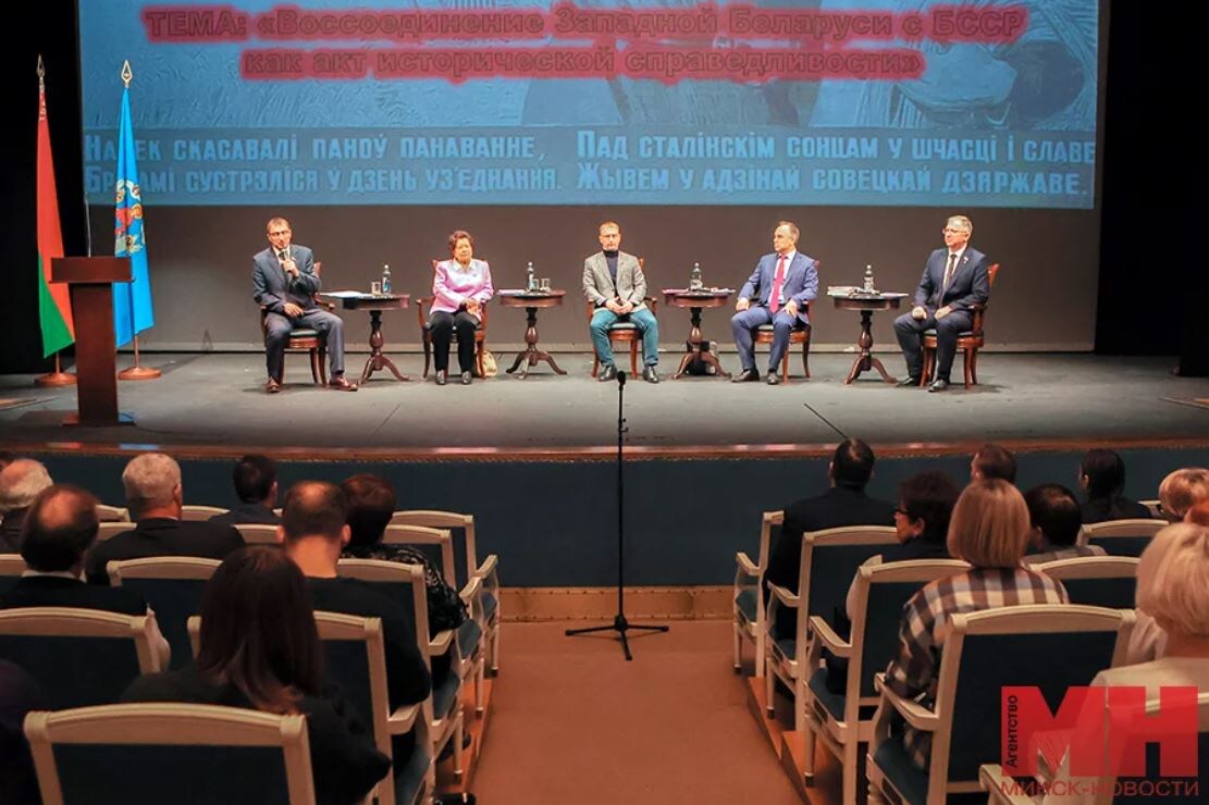 Заседание постоянно действующего семинара «Справедливая история» состоялось в Национальном академическом театре им. Я. Купалы 28 октября, передает корреспондент агентства «Минск-Новости». В заседании на тему «Воссоединение Западной Беларуси и БССР как акт исторической справедливости» приняли участие более 300 преподавателей истории учреждений образования Минска. — Сегодня знаковый день. 28 октября 1939 года, в Белостоке состоялось Народное собрание Западной Беларуси, юридически определившее воссоединение белорусского народа. Оно зафиксировало акт исторической справедливости, — отметил председатель Мингорсовета Артём Цуран, выступивший модератором семинара. — Сегодня мы обсудим аспекты воссоединения Западной Беларуси с БССР, роль и значение для современной Беларуси процессов, происходивших в межвоенный период. Он добавил, что депутаты Мингорсовета и Палаты представителей Национального собрания часто слышат от преподавателей, что им в работе не хватает правдивой и современной информации,