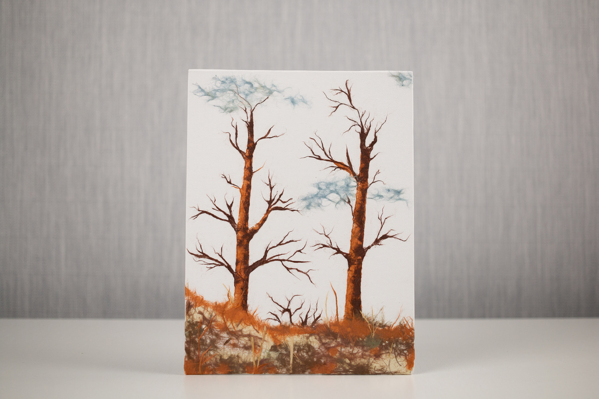 Всем привет! В этот раз я принесла сразу две работы, обе в технике хандигырим. На урок я пришла с целью изобразить осенние деревья, с листвой. Но преподаватель решила, что у меня получились слишком красивые ветки, чтобы прятать их. Поэтому деревья остались лысыми, а я получила второй холст и дополнительные материалы. Дома я решила, что я сделаю что-то совсем другое. Нашла остатки материалов от прошлых уроков, затем выбрала в Пинтересте симпатичную картинку и приступила к самодеятельности. Для этой техники используется корейская бумага ханди (ханджи, хандзи), рисовый клей и кисточка. Бумага рвется руками на кусочки и приклеивается рисовым клеем к холсту, и при необходимости подбивается, чтобы сделать контур четким. Вообще технология изготовления бумаги появилась в Китае в 105 году, и это была бумага, созданная из волокон шелковичного дерева: древесную кору пропаривали и варили, получая размягченные волокна, затем материал промывался в чистой проточной воде, помещался на массивную камен