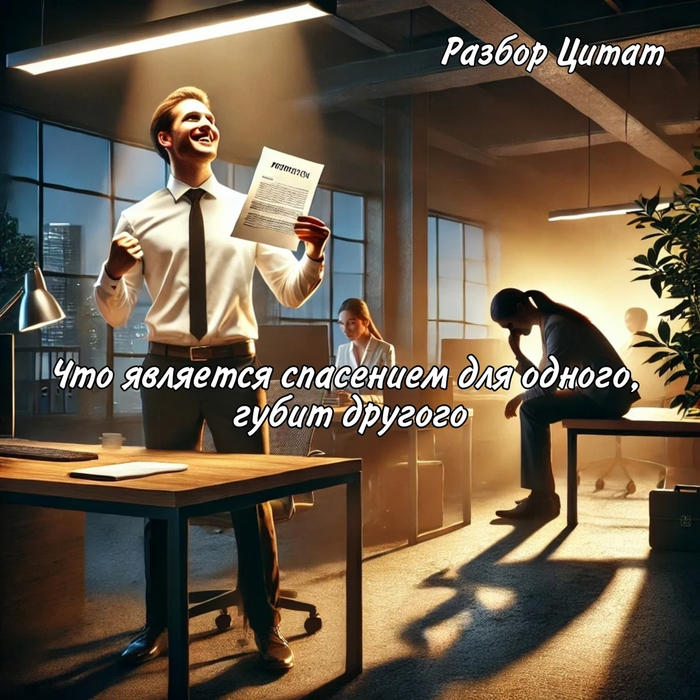 Автор: Даниэль Дефо, Робинзон Крузо Каждое наше решение, каждый выбор, который кажется идеальным для одного, может стать испытанием для другого. Эта истина, как две стороны монеты, — напоминает, что в мире нет однозначных решений. ⚖ Цитата «Что является спасением для одного, губит другого» затрагивает извечную философскую тему — насколько субъективны понятия добра и зла, пользы и вреда. Это утверждение заставляет нас задуматься о том, что один и тот же поступок, который одних ведет к спасению, может быть губителен для других. В нем скрыт смысл того, что действия, приносящие благо одному человеку, нередко имеют разрушительные последствия для другого. Этот парадокс встречается повсюду, от семейных отношений до глобальной политики, и показывает, как тесно переплетаются судьбы людей. 🌊 Фраза вызывает противоречивые чувства: с одной стороны, она напоминает нам о спасении, давая надежду, что, возможно, выход из сложной ситуации в