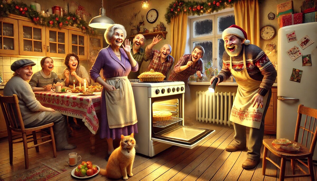Дорогие мои, Рождество в нашей коммуналке – это не просто праздник, это настоящий ритуал. Кухня с утра пахнет корицей, свежими пирогами и квашеной капустой. Соседи ходят в праздничных фартуках, обсуждая рецепты, а Борька – наш рыжий бандит – уже занял наблюдательный пост под ёлкой, готовый сорвать любой оставленный без присмотра лакомый кусочек. Но в прошлом году случилось настоящее рождественское ЧП – исчез мой фирменный пирог! И шо вы думаете? Вместо застолья началось настоящее детективное расследование. Проснулась я рано – Рождество ведь, а значит, нужно всё успеть. Пока на кухне грелся чайник, я решила проверить духовку, где накануне оставила остывать главный шедевр нашего стола – пирог с курагой и орехами. Подхожу, открываю… а там пусто! – Люся! Где пирог?! – закричала я, забыв о тишине. Через минуту в кухню влетела заспанная Люся, натянув на себя халат, на котором гордо красовалась надпись «Королева кухни». – Галя, ты шо разоралась? Утро же ещё, полдома спит!
