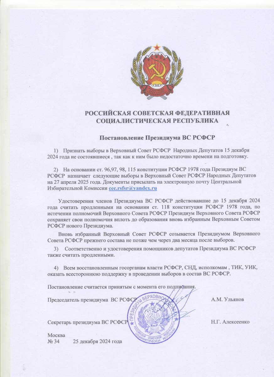 13-15 декабря 2019 в Москве состоялся I чрезвычайный съезд Народных депутатов и делегатов РСФСР на котором избрали Верховный Совет РСФСР