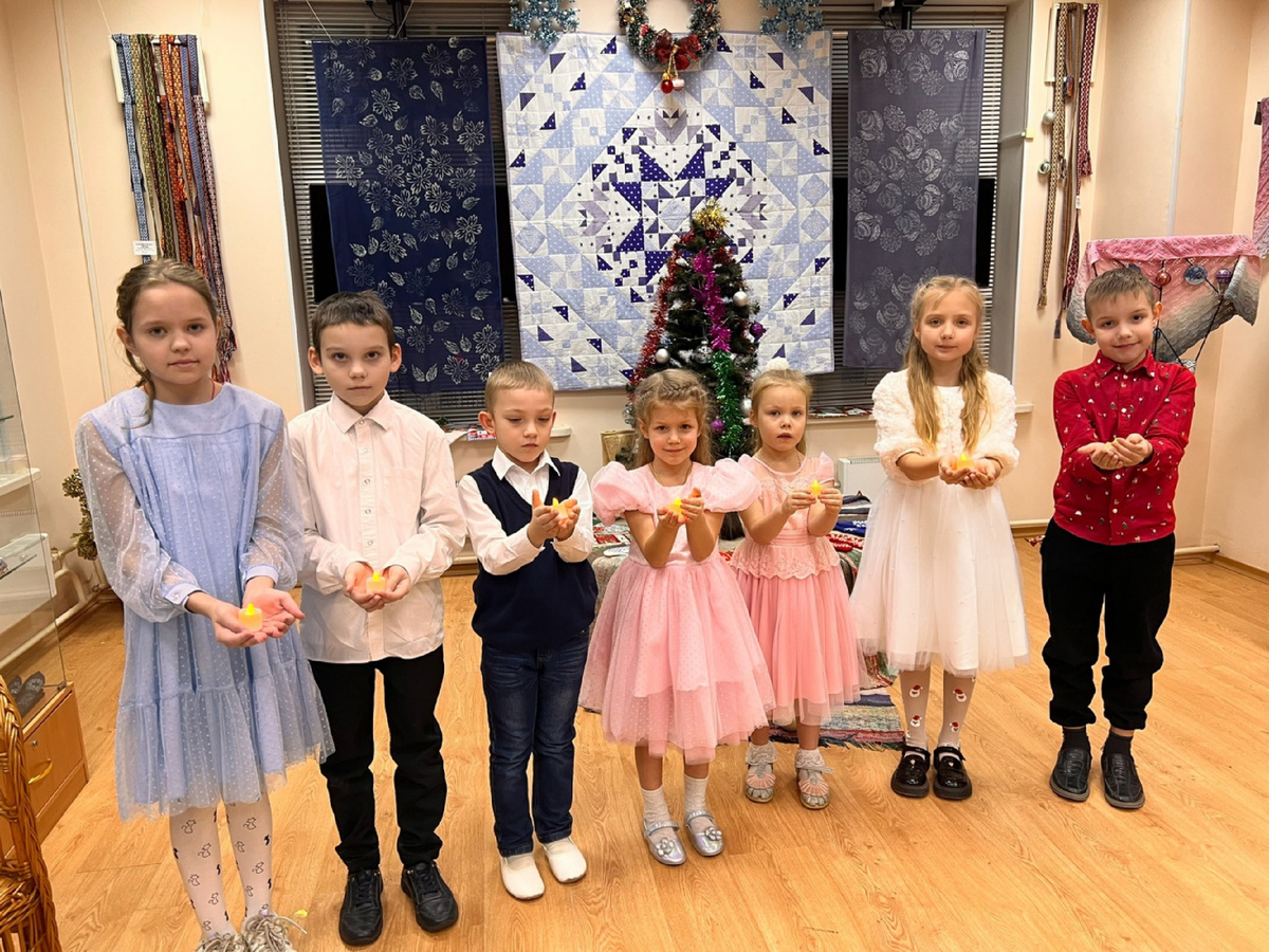 Дети исполнили Рождественскую песню «Мы маленькие свечи» под руководством преподавателя Валерии Мухановой.
