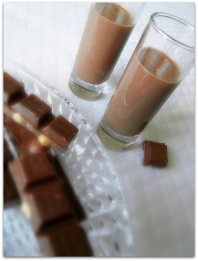 Я, как и многие женщины, люблю ликёр "Бейлис" и, как любитель всяких кулинарных экспериментов, опробовала множество рецептов его приготовления, пока не нашла этот. Нет, данный ликёр не "Бейлис" и даже не его аналог, это совсем другой ликёр, который намного превосходит знаменитый "Бейлис". Во всяком случае те, кто любит шоколад, оценивают именно так. А готовится он так просто и из доступных продуктов, что даже не верится. Давайте приготовим и побалуем себя и своих близких вкусным напитком, который хорош, как в чистом виде, так и в качестве добавки к кофе или даже десертам, мороженому. - 500мл. 22% сливок - 100г. качественного горького шоколада - 1б. (360-380г.) сгущённых сливок/молока с сахаром (380г.) - 1 ч.л. ванильной эссенции или ванильного сахара - 200мл. водки/белого рома - хорошая компания Нагреваем сливки почти до кипения. Шоколад измельчаем любым удобным способом и заливаем его небольшим количеством горячих сливок (примерно 100-150мл.), оставляет на минуту и перемешиваем до од