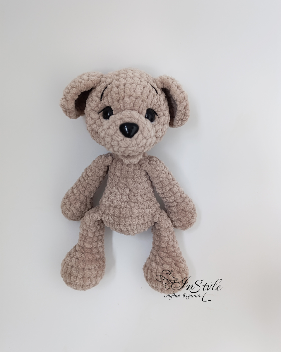 Рост 21 см. Гипоаллергенная плюшевая пряжа (Himalaya dolphin baby, 100% микрополиэстер). Глазки и носик на безопасном креплении. Наполнитель — холлофайбер.