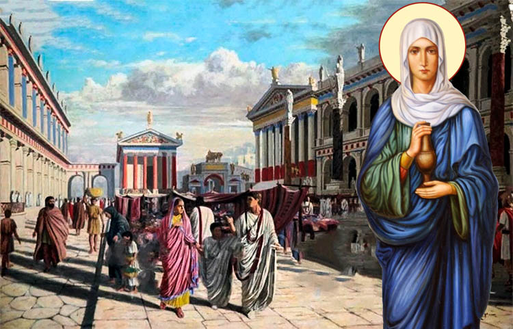 Трудясь день и ночь, она совершенно забывала, что и сама может подвергнуться преследованию. Однажды, придя в темницу к узникам, которым она служила еще накануне, не нашла их на месте, так как ночью все они были казнены, чтоб освободить место в темнице для множества других, вновь забранных христиан. – Она горько заплакала и спрашивала у всех сквозь слезы: «где же мои друзья-узники?» Заключив из этого, что и она христианка, ее взяли и представили на суд к правителю. Ее распяли между четырьмя столбами и развели огонь, чтобы ее сжечь, но прежде чем разгорелось пламя, она скончалась среди мучений. (См. кн. «История православной церкви», новое испр. изд. К. Победоносцева, стр. 62–64).