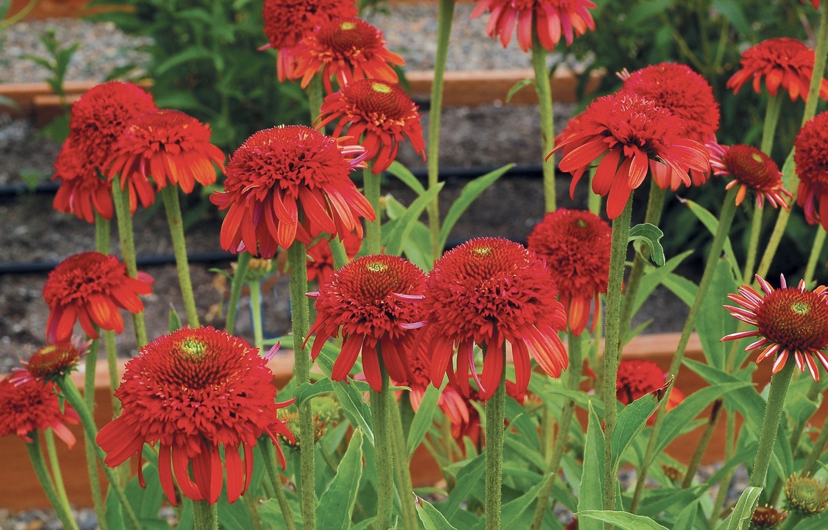 Эхинацея Метеор ред. Ярко-красная махровая букетная представительница Сложноцветных. Echinacea Meteor Red