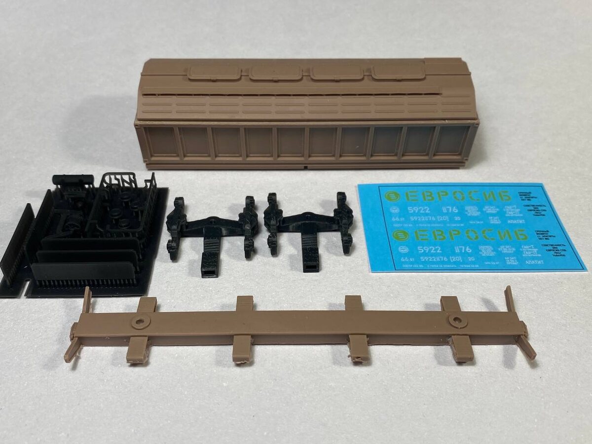 Декаль из набора позволяет собрать модель в окраске ТК "Евросиб". Такую окраску имели все вагоны, эксплуатировавшийся в конце V - начале VI эпох. При этом при заказе нескольких наборов можно получить разные номера и сделать небольшой прототипичный состав.