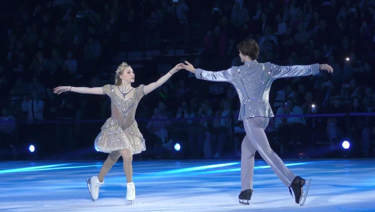 Софья Муравьёва и Владислав Дикиджи исполняют парный номер в шоу Евгения Плющенко
